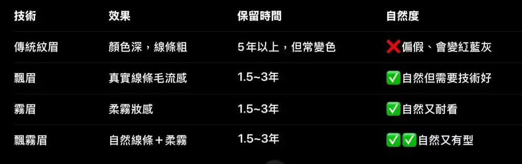 霧眉、飄眉、飄霧眉差在哪?哪種眉型最自然又持久?本篇從 Dcard 熱門關鍵字與 YouTube 實錄出發,解析三大紋眉技術特色與適合族群,幫你挑出最適合的半永久眉型設計!